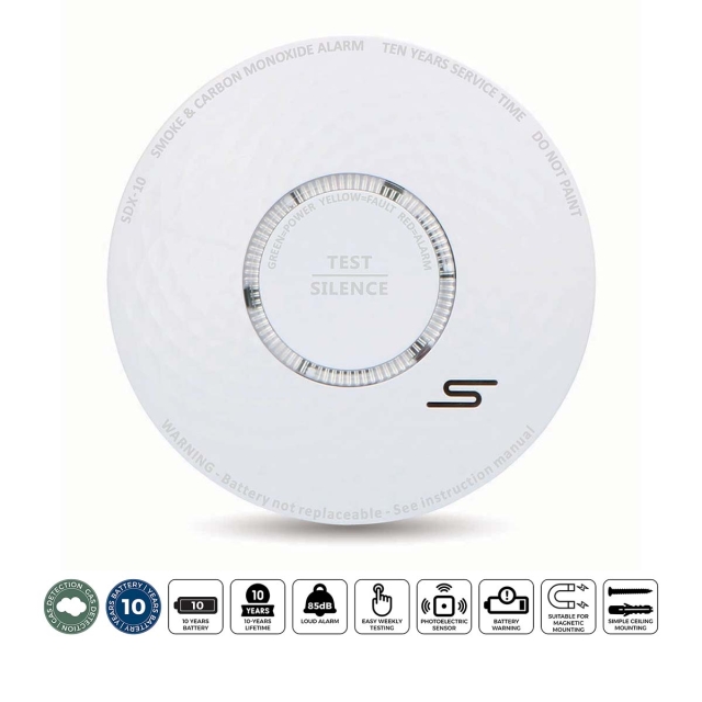 • Alecto SCA-10 Rök- och kolmonoxidvarnare i en och samma enhet.