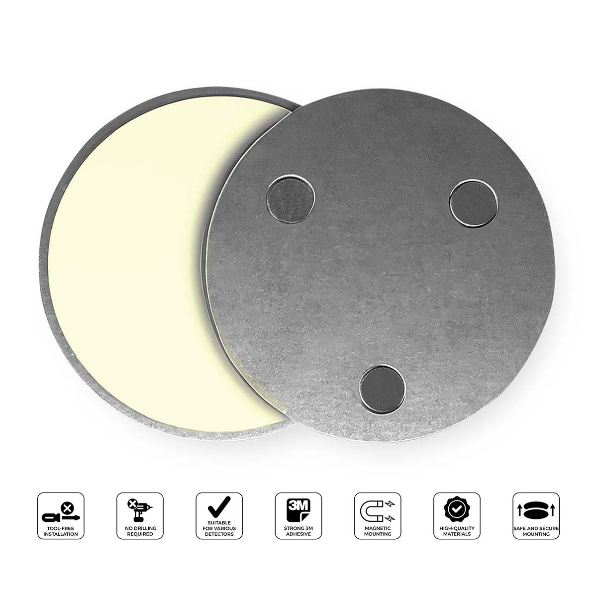 This magnetic mounting kit lets you install your smoke or carbon monoxide detector quickly and securely. You avoid drilling and keep ceilings and walls intact. The round shape fits most smoke and CO detectors.
