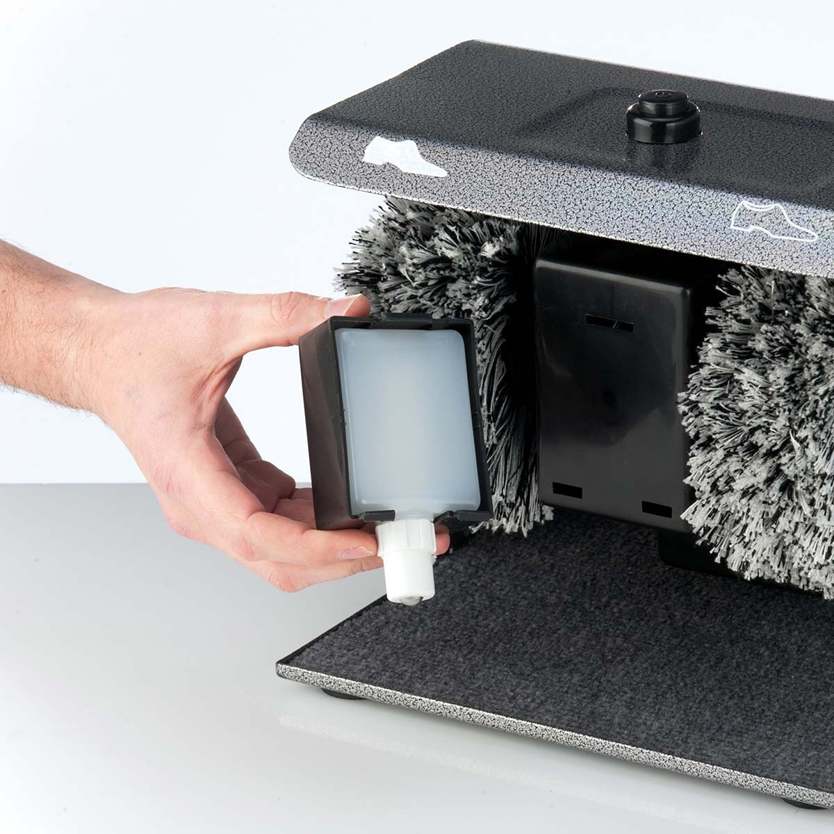 Equipped with two separate brushes for light and dark shoes and with a power of 90 Watts, this shoe polishing machine is suitable for most types of shoes. The push button on top allows for easy operation with the foot. In the dispenser you can add liquid shoe cream for even better care and a nice shiny effect.