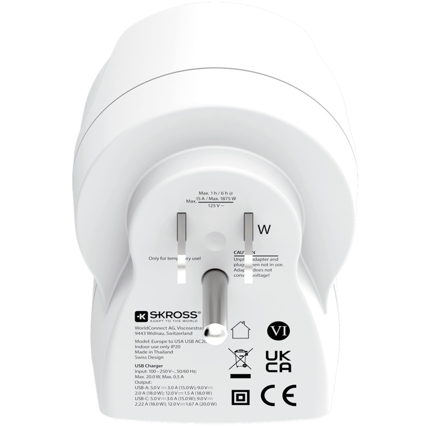 The American socket standard is used in almost 50 destinations around the world. This travel adapter from SKROSS® provides a reliable and easy connection for devices with Schuko or Euro plug.