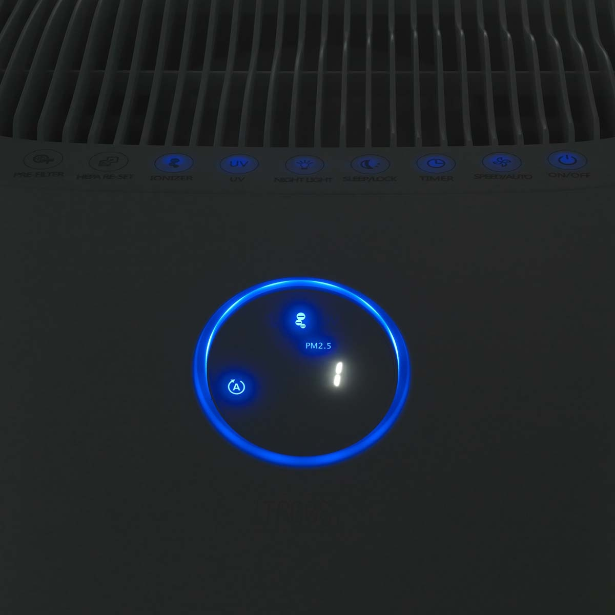 The air purifier has a Clean Air Delivery Rate (CADR) of 470 m³/h. This means that it is therefore suitable for rooms up to 90m². The air purifier has a clean air indicator that displays the results with a clearly visible numerical indicator. Does the room get a 1? Then the air quality is completely fine. A score of 20+ indicates mediocre air, but this is something the Trebs air purifier can do something about.