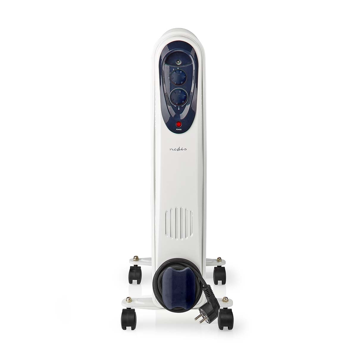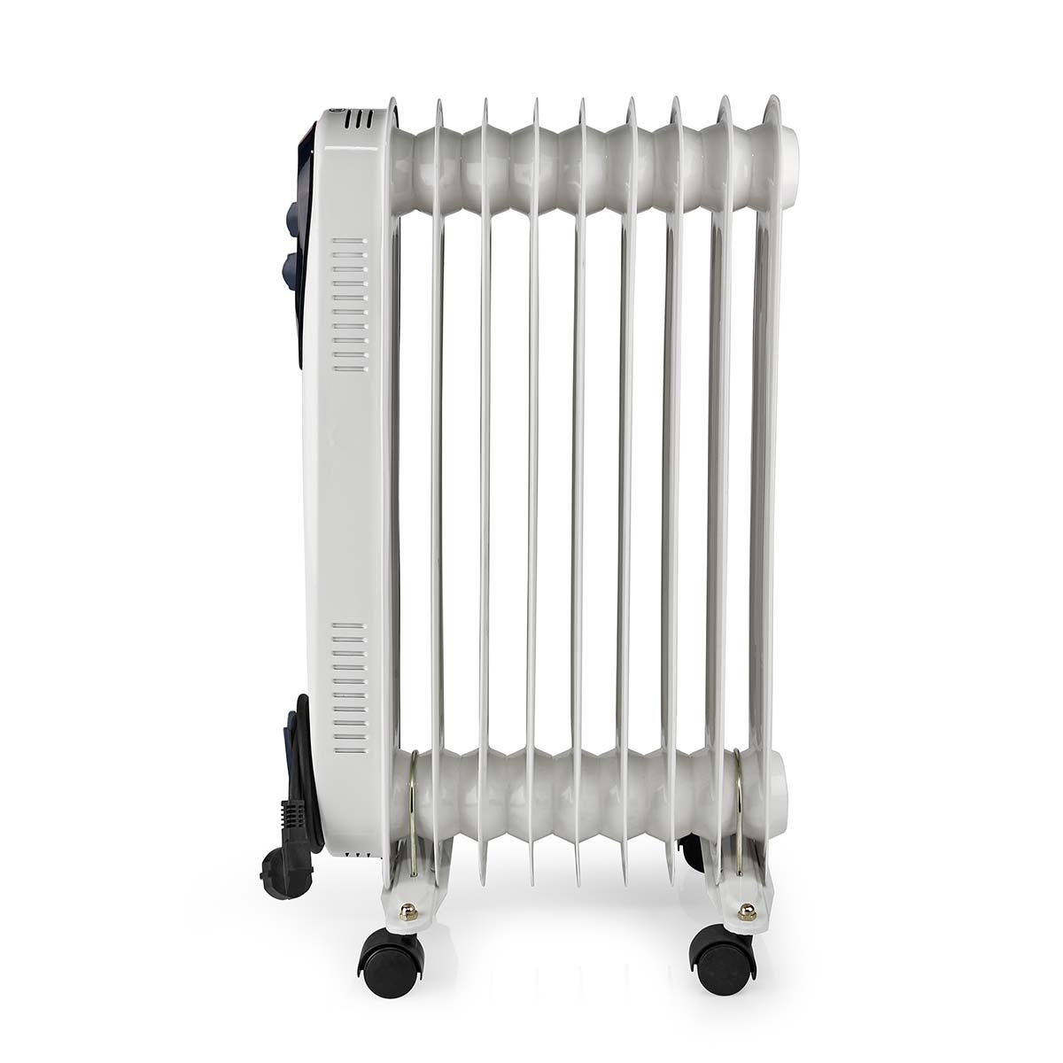 Nedis Mobile Oil Radiator | 800 / 1200 / 2000 W | 9 Fins | Adjustable thermostat | 3 Heat Settings | Fall over protection | White