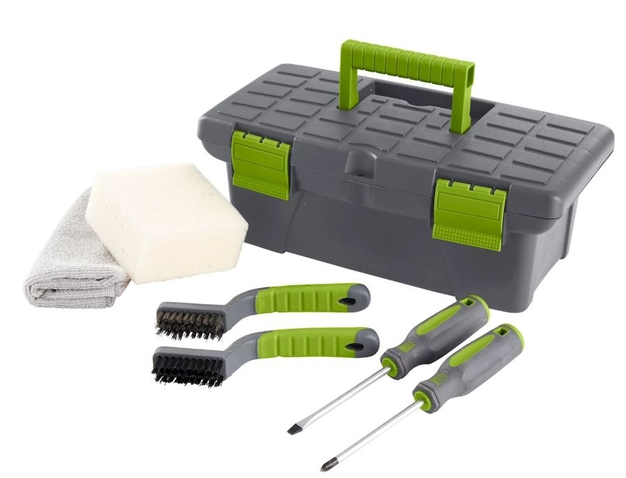 Vare sig du ska byta klippknivar eller behöver rengöra din robotgräsklippare, så är Grouwns verktygslåda med hjälpmedel den perfekta lösningen för att ha allt på samma plats.
