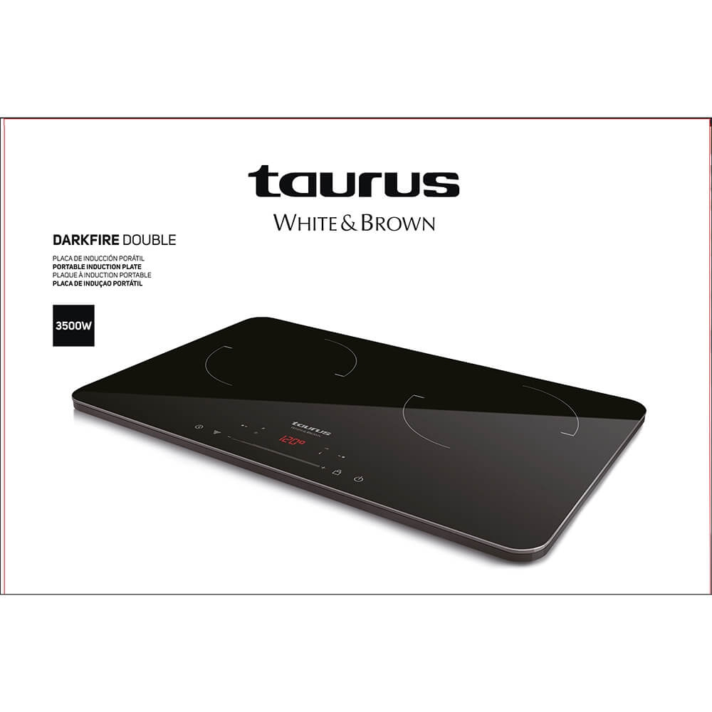 Taurus Double Induction Hob Darkfire Offers Efficient Cooking & Low Consumption - Easy to Use Touch Control, Adjustable Temperature & Power, Child Safety Lock & 3-hour Timer Function