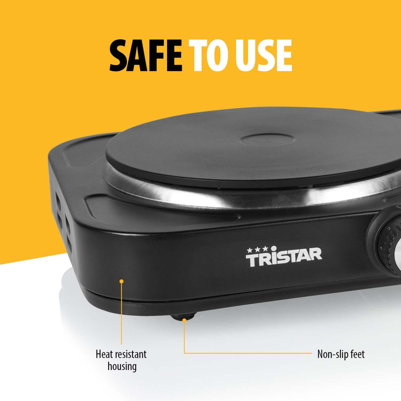 Dubbel kokplatta med en diameter på 15,5 cm och 18,5 cm. Utrustad med 2 separata termostatkontroller, inklusive strömindikatorlampor och sladdförvaring. Lämplig för stora och små pannor.