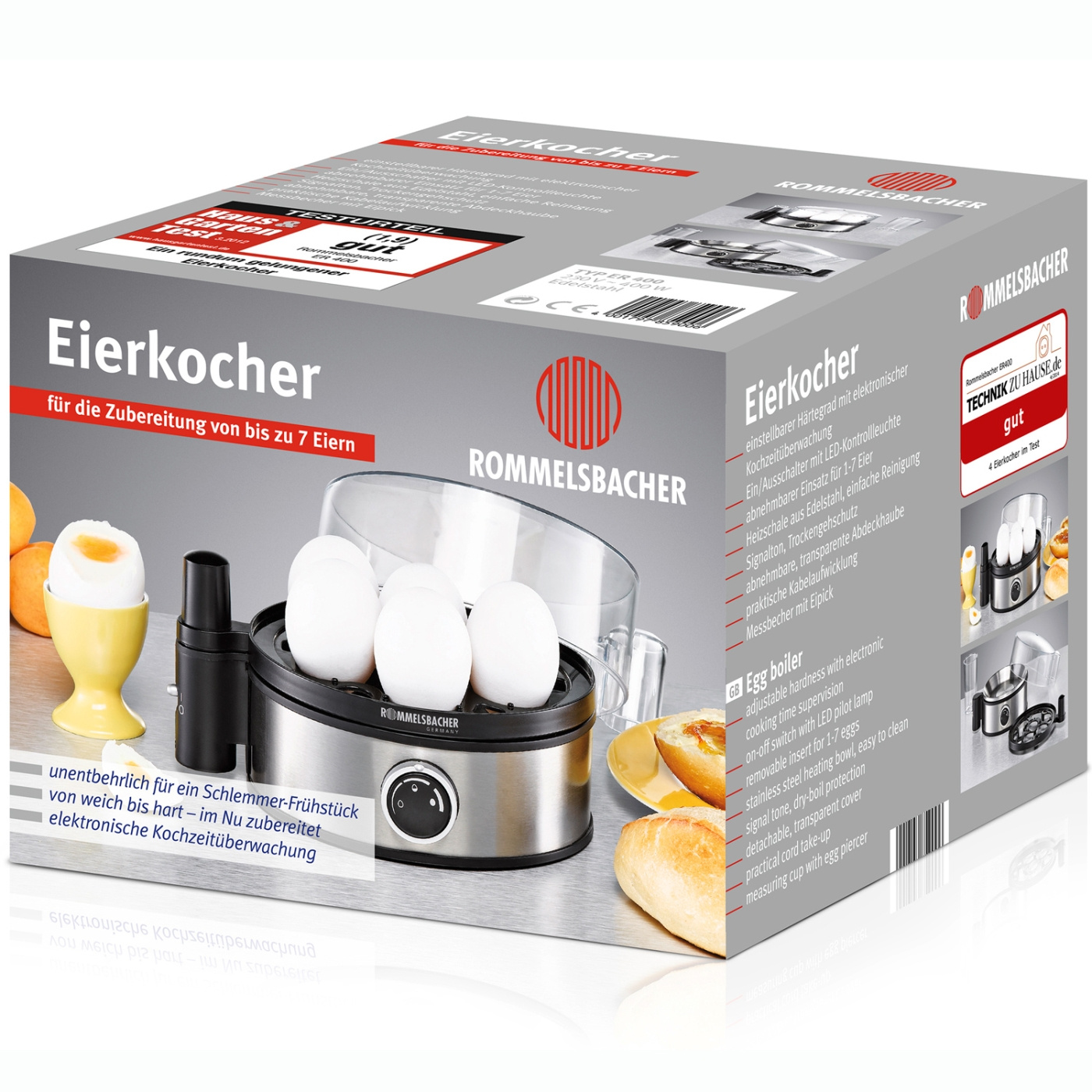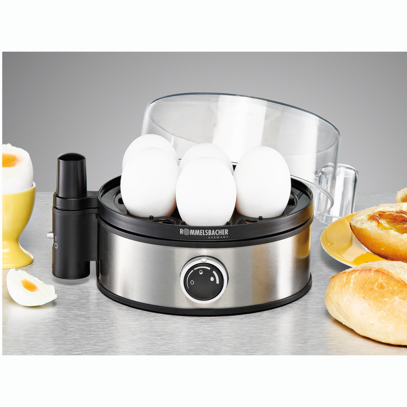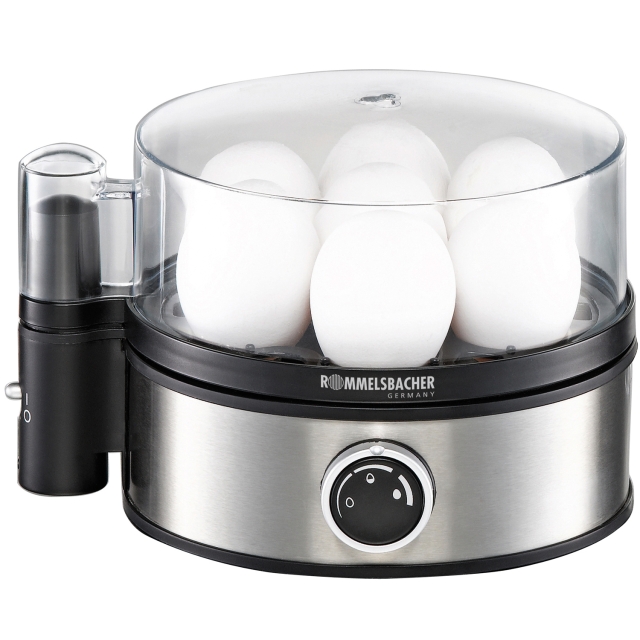 Med denna attraktiva äggkokare kan du tillaga upp till sju frukostägg. Du väljer hårdhetsgrad på äggen från löskokt till hårdkokt. Tillagningen är tidsstyrd och övervakas elektroniskt. En signalton hörs när äggen är klara. De färdigkokta äggen tas bort snabbt, säkert och kan kylas på äggbrickan. Därefter är de klara att serveras.