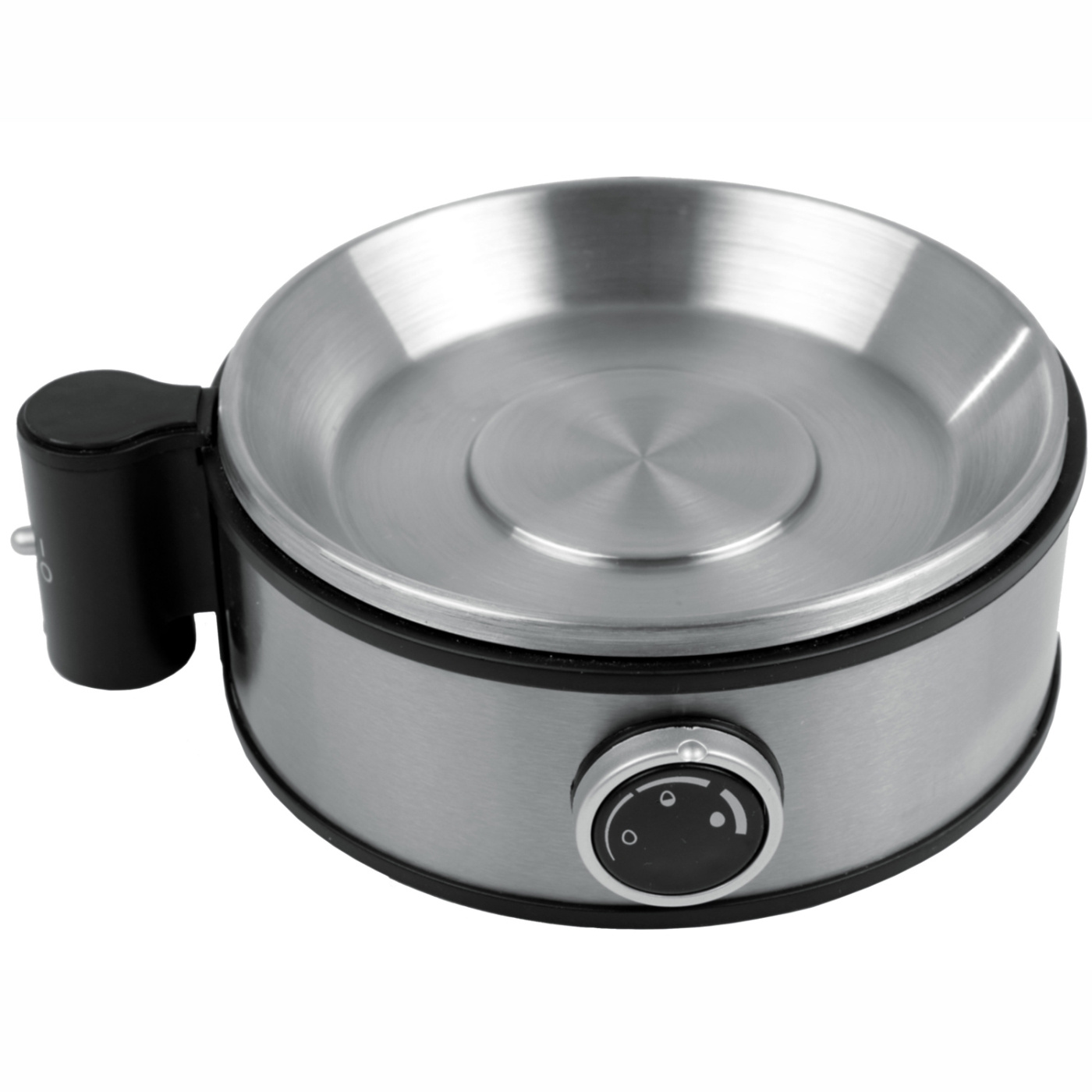 Den lättskötta värmeskålen i rostfritt stål och den praktiska sladdupptagningen för sladd som inte används är ytterligare fördelar med denna praktiska kökshjälp.