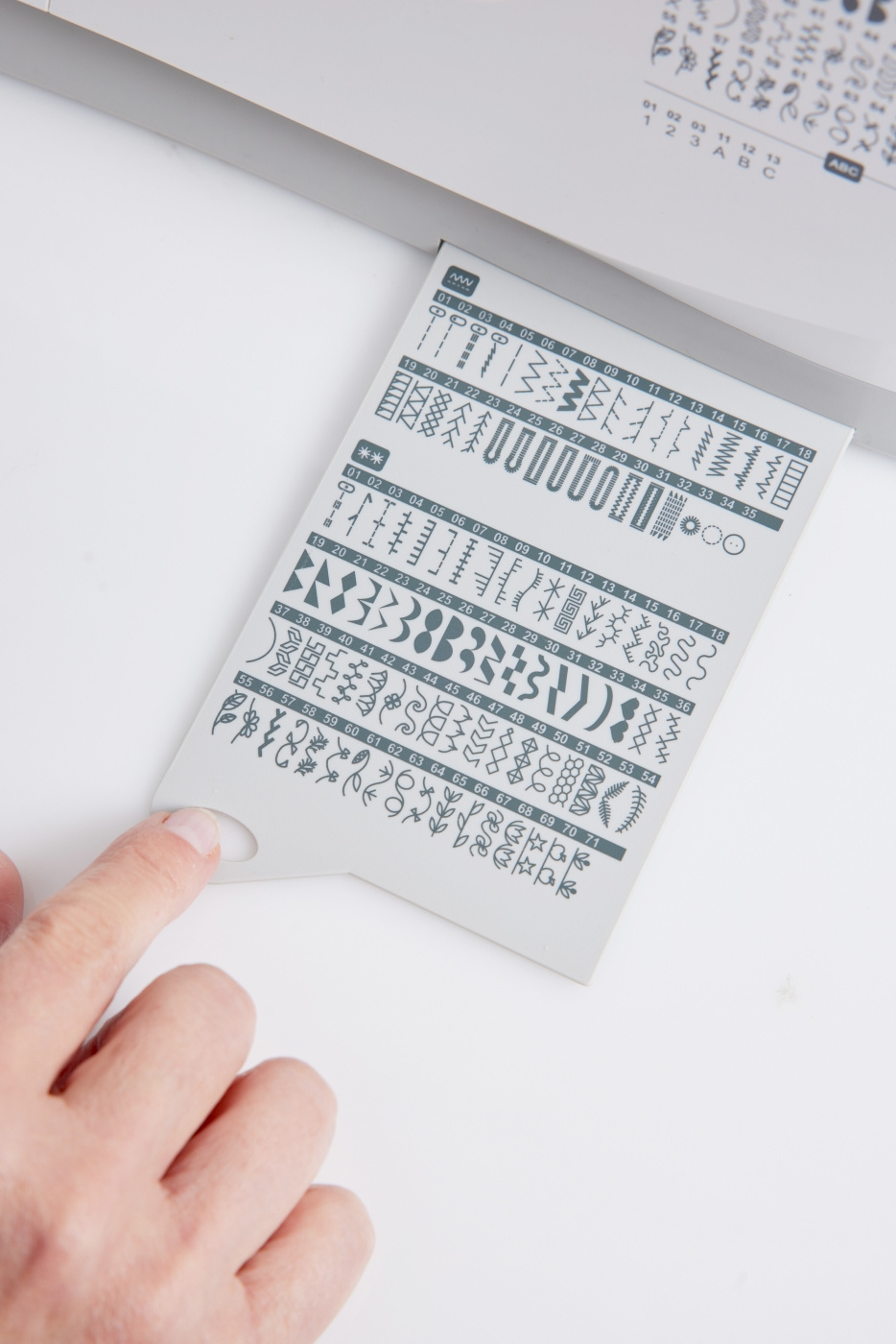Maskinen kommer med ett mycket brett urval av tillbehör. Utöver de grundläggande tillbehören underlättas sömnaden av en extra nivå och en platt matningsanordning, som gör att tyglagren kan matas jämnt från både botten och toppen. Med plattmatningsanordningen kan du sy quiltning och mycket svåra material som sammet och läder.