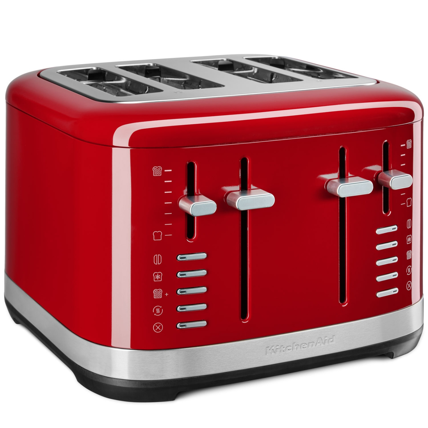 Den här brödrosten med 4 fack har ett robust metallhölje. Du kan förvänta dig KitchenAid-kvalitet, oavsett vilken färg du väljer. Registrera din nya produkt eller spara kvittot och kontakta oss om det skulle uppstå några problem i framtiden.