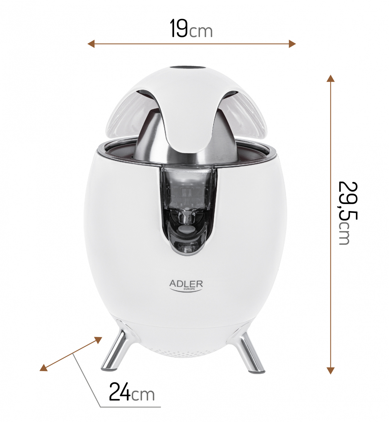 - 2 pressing cones for big and small fruits