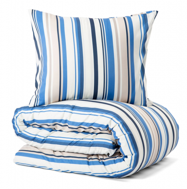 Berga mikrofiberbäddset från Lord Nelson Victory med breda och smala ränder i en harmonisk kombination. Setet består av påslakan och örngott och är tillverkad av polyester med den positiva egenskapen att de torkar snabbt och väger lite. Bäddset i mikrofiber har blivit populärt att använda i både båt och husvagn på grund av att de är lätta att packa och klarar sig bra i fuktiga miljöer. Kombinera gärna med vårt stora utbud av örngott och underlakan.