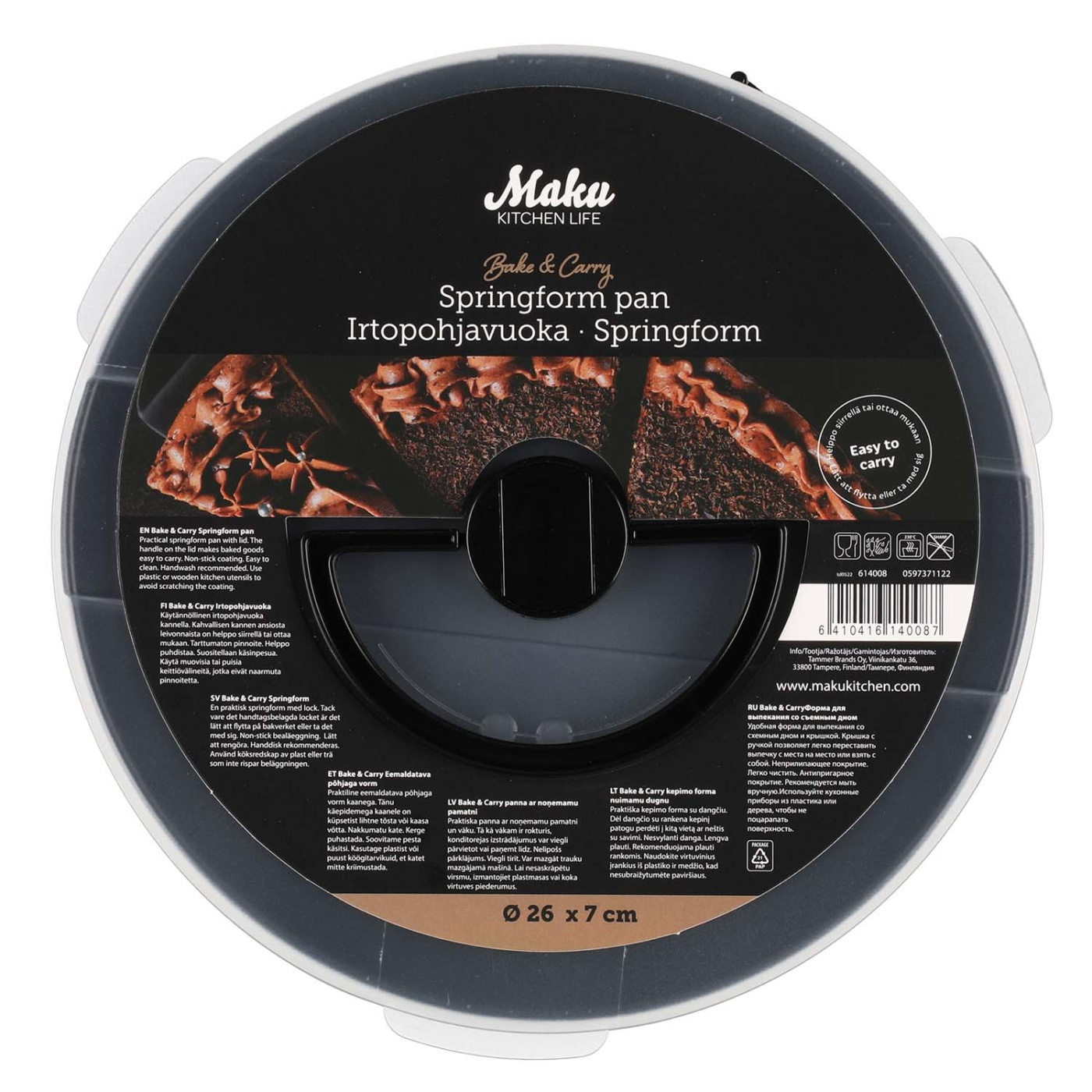 Praktisk och rymlig pajform med slitstark non stick-beläggning och ett stadigt plastlock med handtag – perfekt när du vill ta med dig pajen till picknick, kalas eller middag med vänner. Formen är lätt att rengöra och beläggningen gör att bakverken lossnar smidigt.