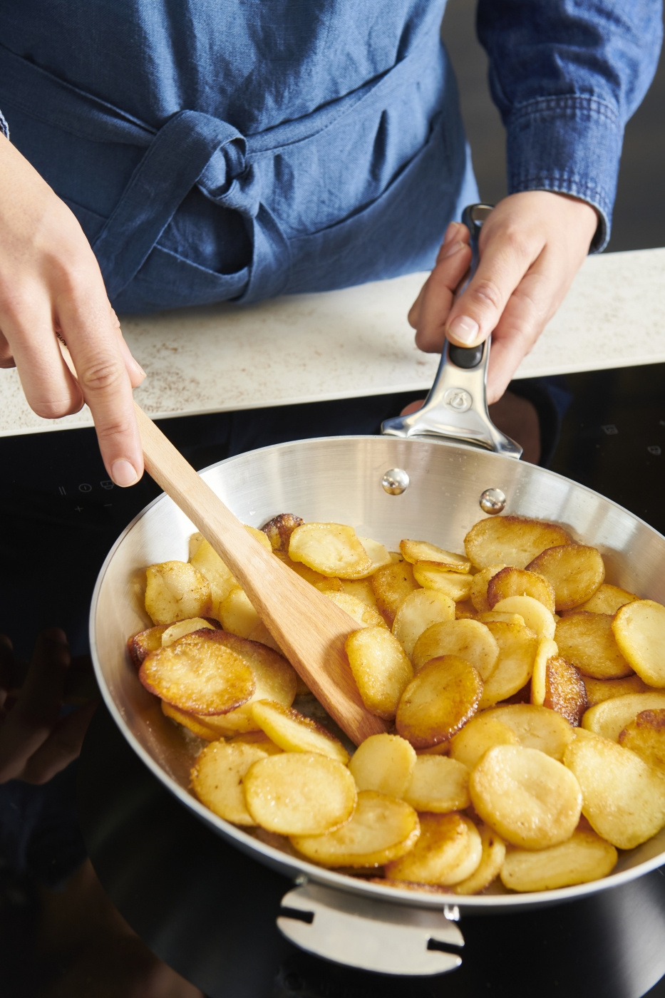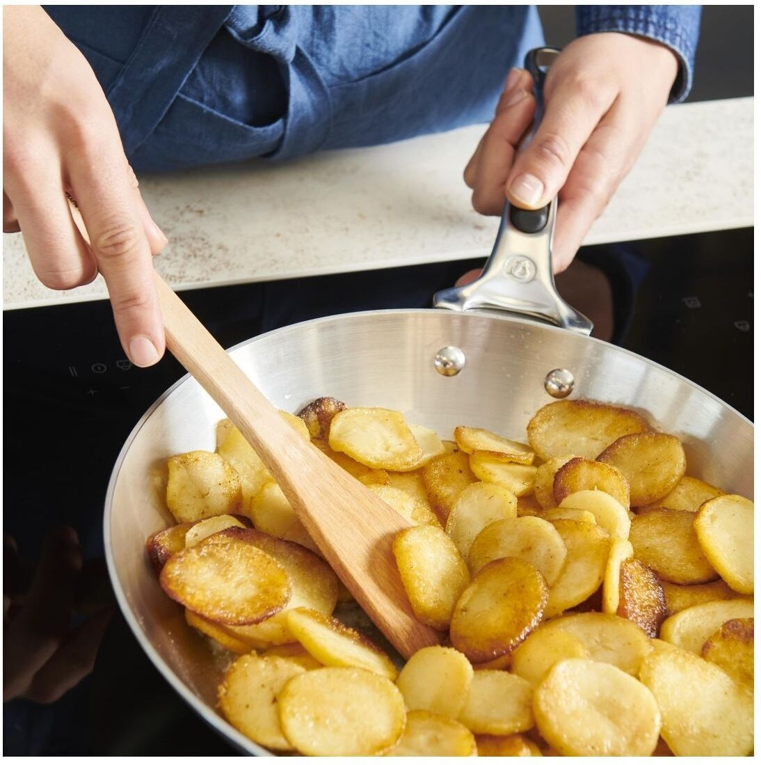 The pan is very strong and heat-resistant, with a body thickness of 2.5-3 mm, suitable for all heat sources, including induction and open fires. De Buyer carbon steel pans have been produced in the same factory in France since 1830. The carbon steel frying pan is a traditional French frying pan that can withstand high temperatures, with a high, rounded edge that makes it easier to shake the food and keeps it in the pan.
