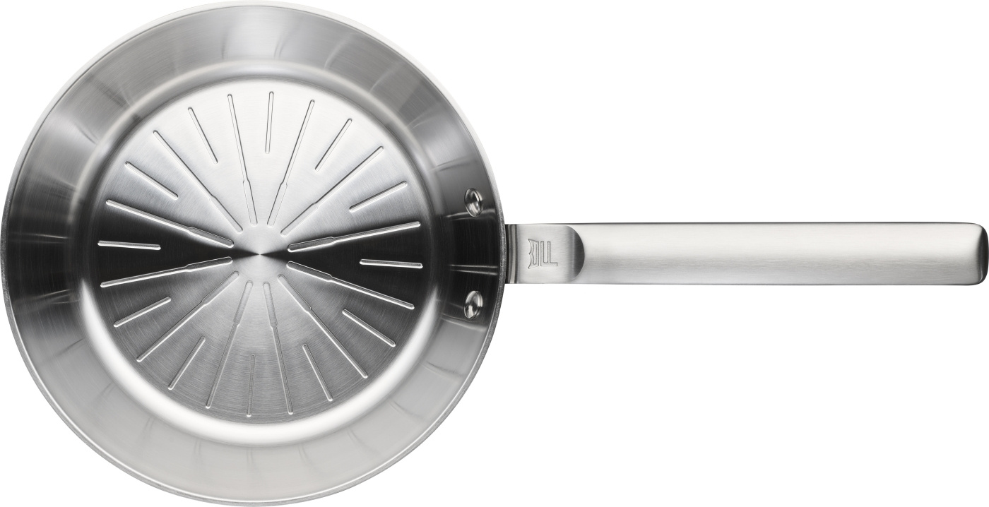Fiskars Norden-stekpanna, 24 cm. Norden steel-stekpannan har en flerskiktsstruktur som värms upp jämnt över hela pannans bredd. Pannan passar till stekning och bryning av mat samt till tillagning av små portioner vid höga temperaturer. Aluminiumkärnan mellan den innersta och yttersta stålager värms upp jämnt och effektivt på alla typer av spisar. Mönstret på botten gör det enkelt att sprida ut matolja eller smör. Den eleganta handtaget, tillverkat av rostfritt stål, blir inte lätt varmt vilket ökar användarkomforten. Tål upp till 270 grader vid stekning och i ugnen. Tillverkad i Finland.