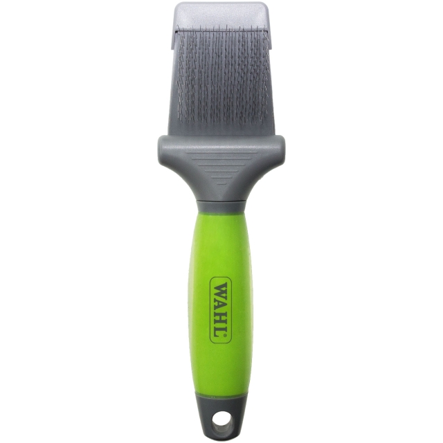 Två borstsidor med olika funktioner, olika färgade: Svart sida: Tar bort tovig päls, speciellt för lång päls Grå sida: Mjuka borst - perfekt för kort päls eller fin päls i ansiktet eller på tassar.