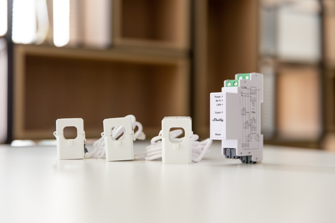 Shelly The Pro 3EM is designed for DIN-rail mounting and comes with three current transformers. The device reports power measurement (W), voltage measurement (V), current measurement (A), and power factor (PF) in real time and stores measurements for up to 60 days locally on the device and for 365 days when connected to the Shelly Cloud application. The device also meets the requirements of the IEC 62053-21 standard with Class B accuracy (maximum 1% deviation). Shelly The Pro 3EM features a built-in real-time clock that retains the time and date if the connection to the SNTP server is lost.
