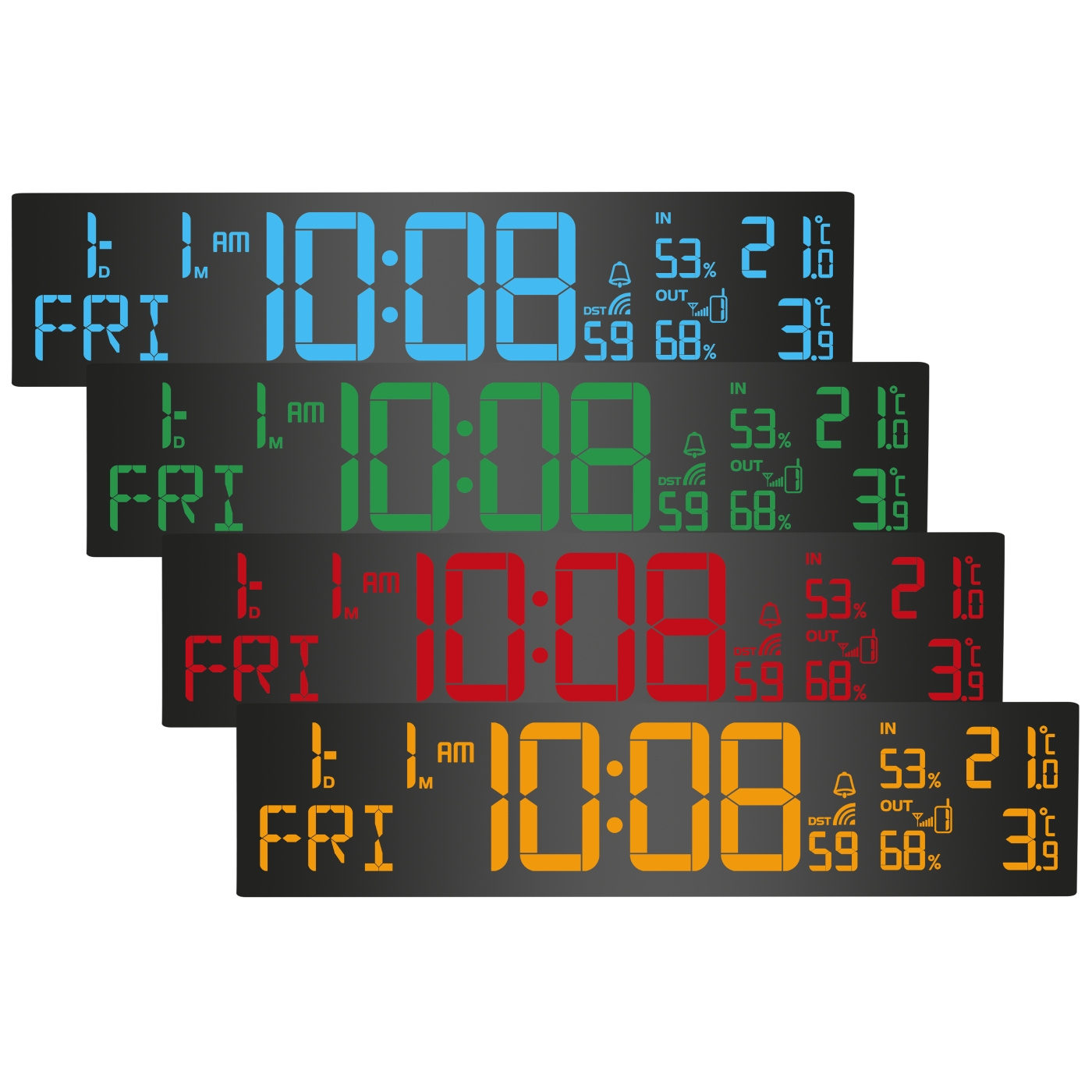 • Display color adjustable or temperature dependent