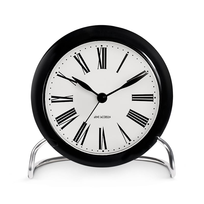 In addition to being an architect, Arne Jacobsen was a total designer who designed everything for his projects. His table clock for LK was originally created in 1939 with two different dials. The dial with Roman numerals was the precursor to the later famous Roman clock for Aarhus City Hall. The graphic expression of the Roman clock face and the metal base, clearly inspired by the Ant and Syver chairs, make the clock an obvious gift idea for design lovers. The clock fits into any modern home, and with updated features such as snooze and light sensor, it is an effective alarm clock for the bedside table.