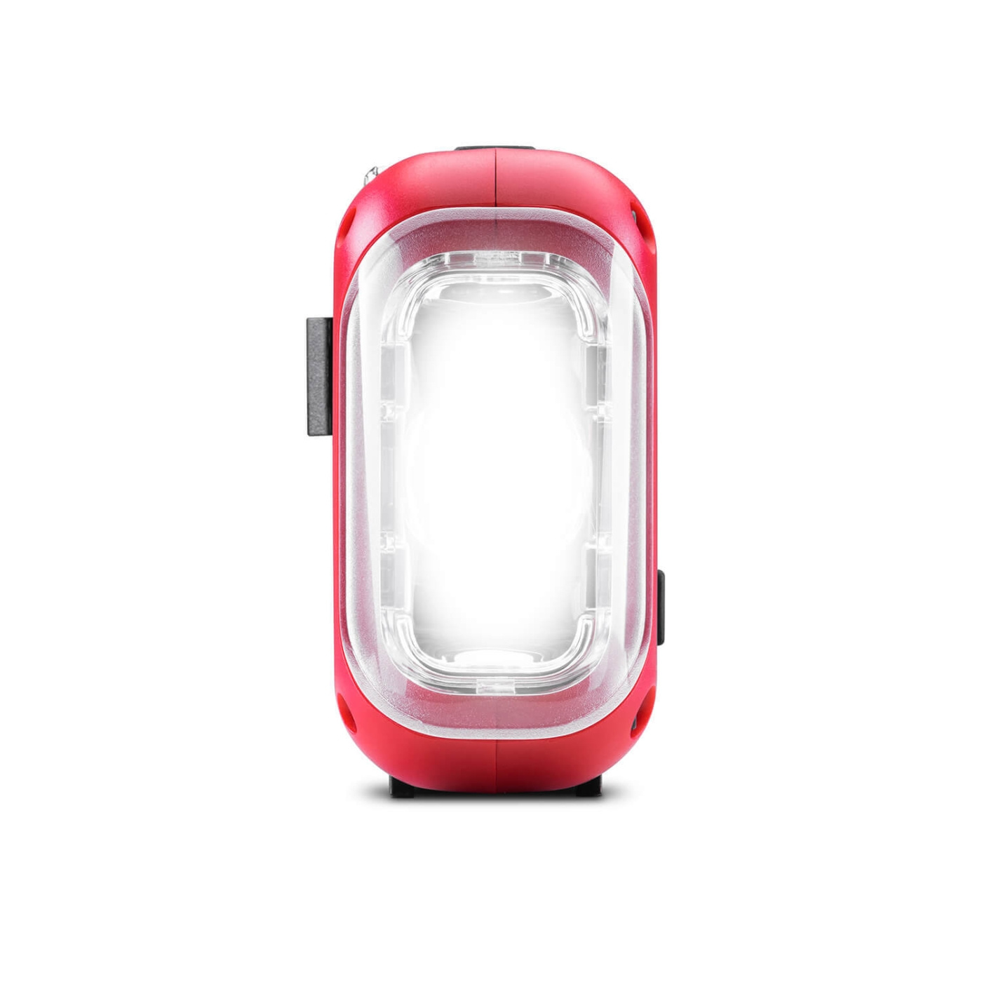 In the field, the ER250 BT can be charged by the dynamo crank located on the back of the product, which allows manual charging during a power outage or anytime away from a power source, and the solar panel that charges the internal Li-Ion 2600mAh battery pack.