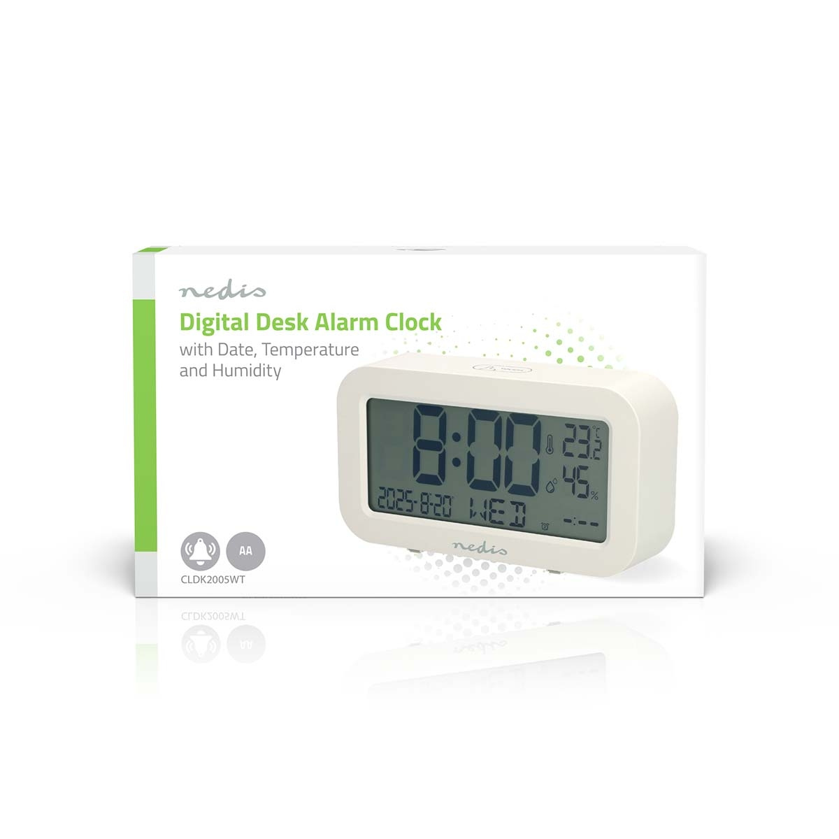 For added functionality, the clock monitors the indoor temperature and displays it in either degrees Celsius or Fahrenheit. A built-in humidity indicator allows users to keep track of indoor air quality, supporting a healthier and more comfortable environment.