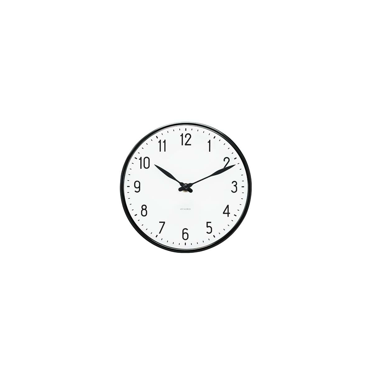 The Arne Jacobsen Station Wall Clock – 16 cm – Black is a refined interpretation of modernist design, rooted in clean lines and functional elegance. Originally created in the 1940s for Lauritz Knudsen's electrical factory, it has since become a timeless icon in Danish design history.