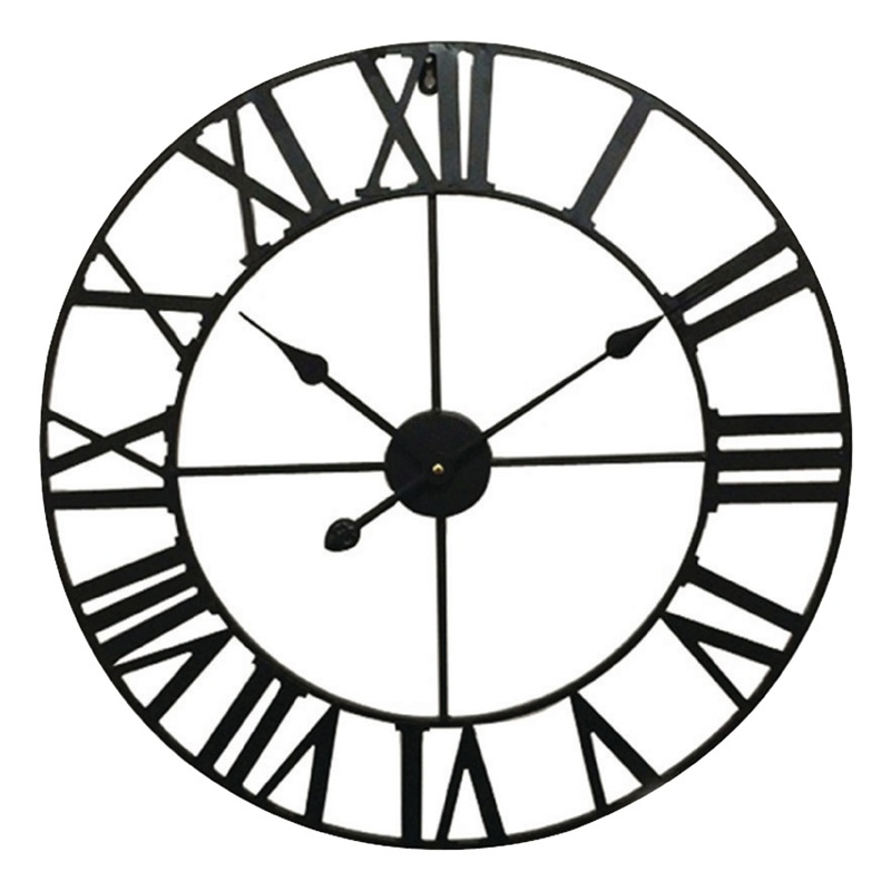 Metal 60 cm diameter wall clock with analogue display.
