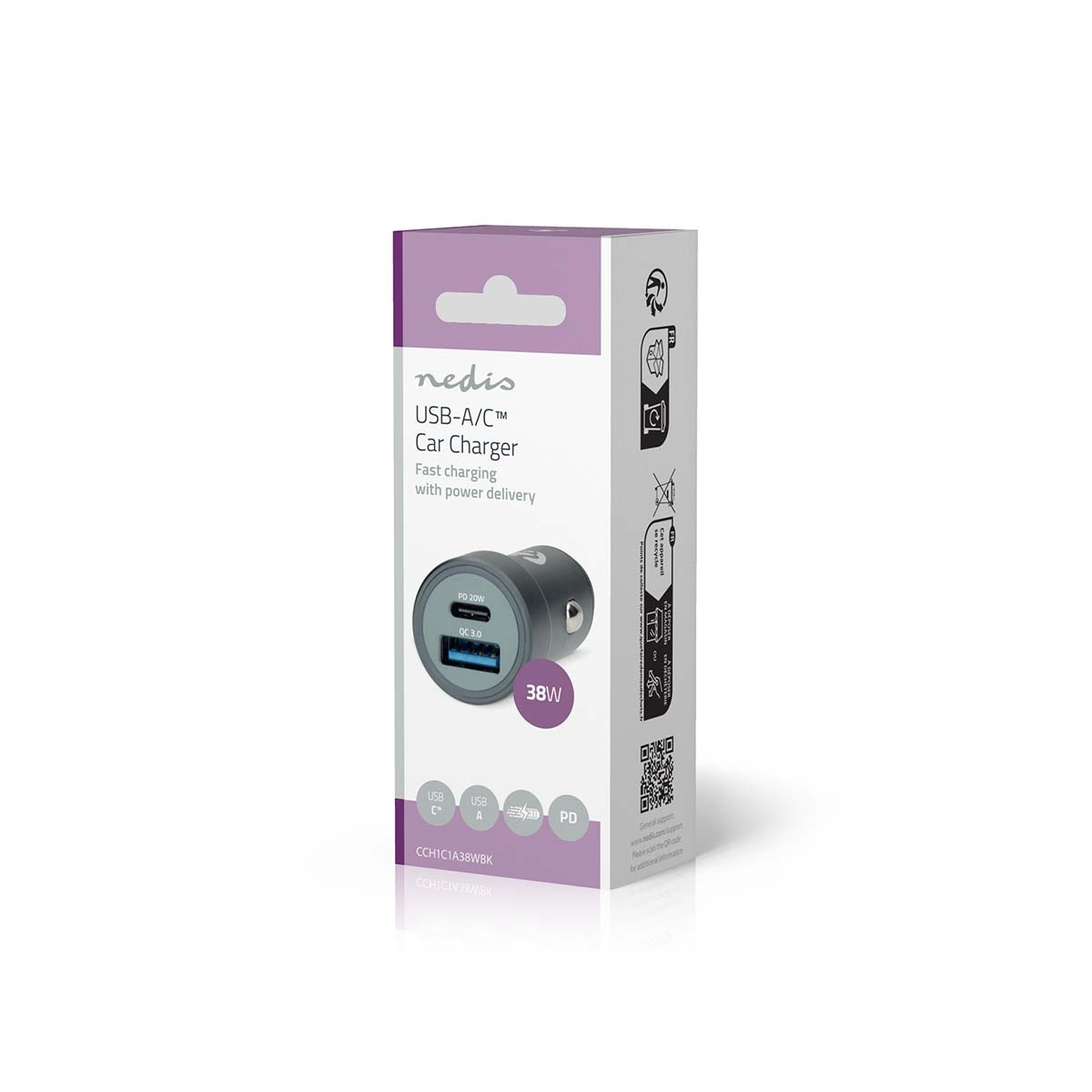 Equipped with a USB-C™ Power Delivery port (20W) and a USB-A Quick Charge™ 3.0 port (18W), the charger offers fast and reliable charging for a wide range of devices. Whether you use the latest Apple iPhone or iPad, or an Android smartphone or tablet, this charger ensures optimal performance with support for both Power Delivery and Quick Charge™ protocols.