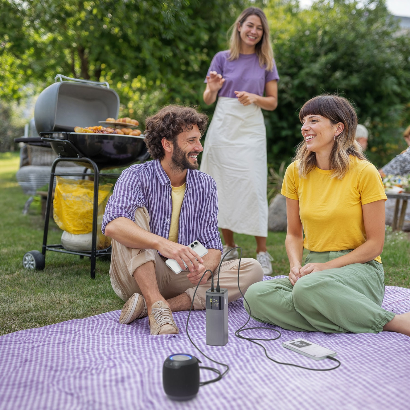 Equipped with two USB-C ports and one USB-A port, the powerbank can charge up to three devices simultaneously. For optimal charging speed, using a single USB-C port provides the full 200 watts, while using both USB-C ports divides the power to 100 watts each. The USB-A port offers an additional 18 watts, ensuring efficient charging for all your devices.