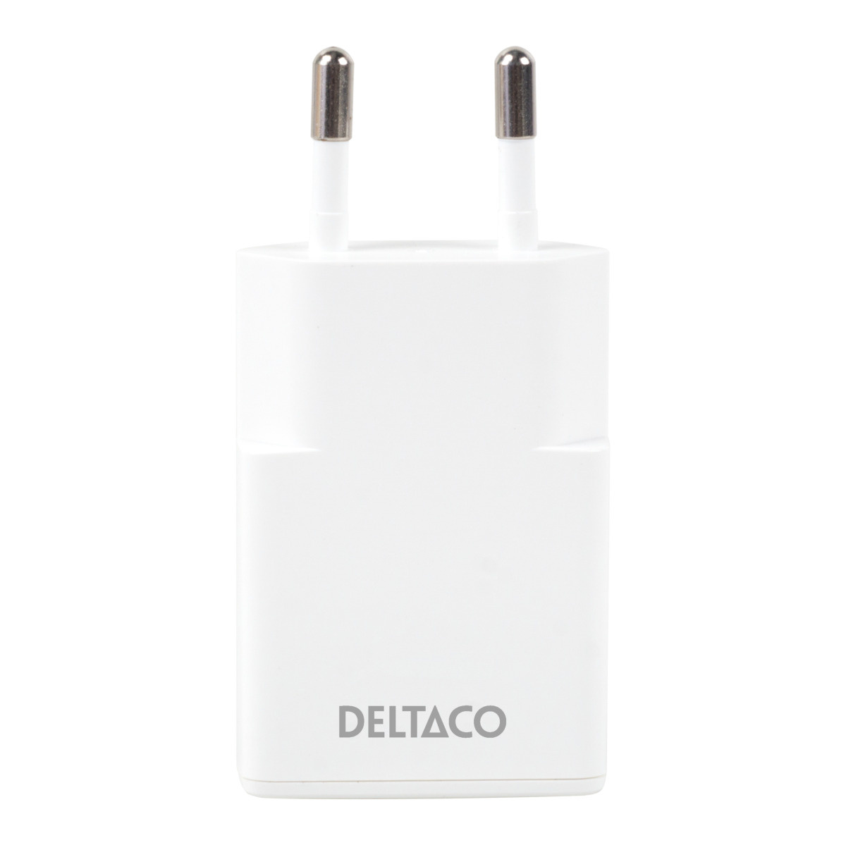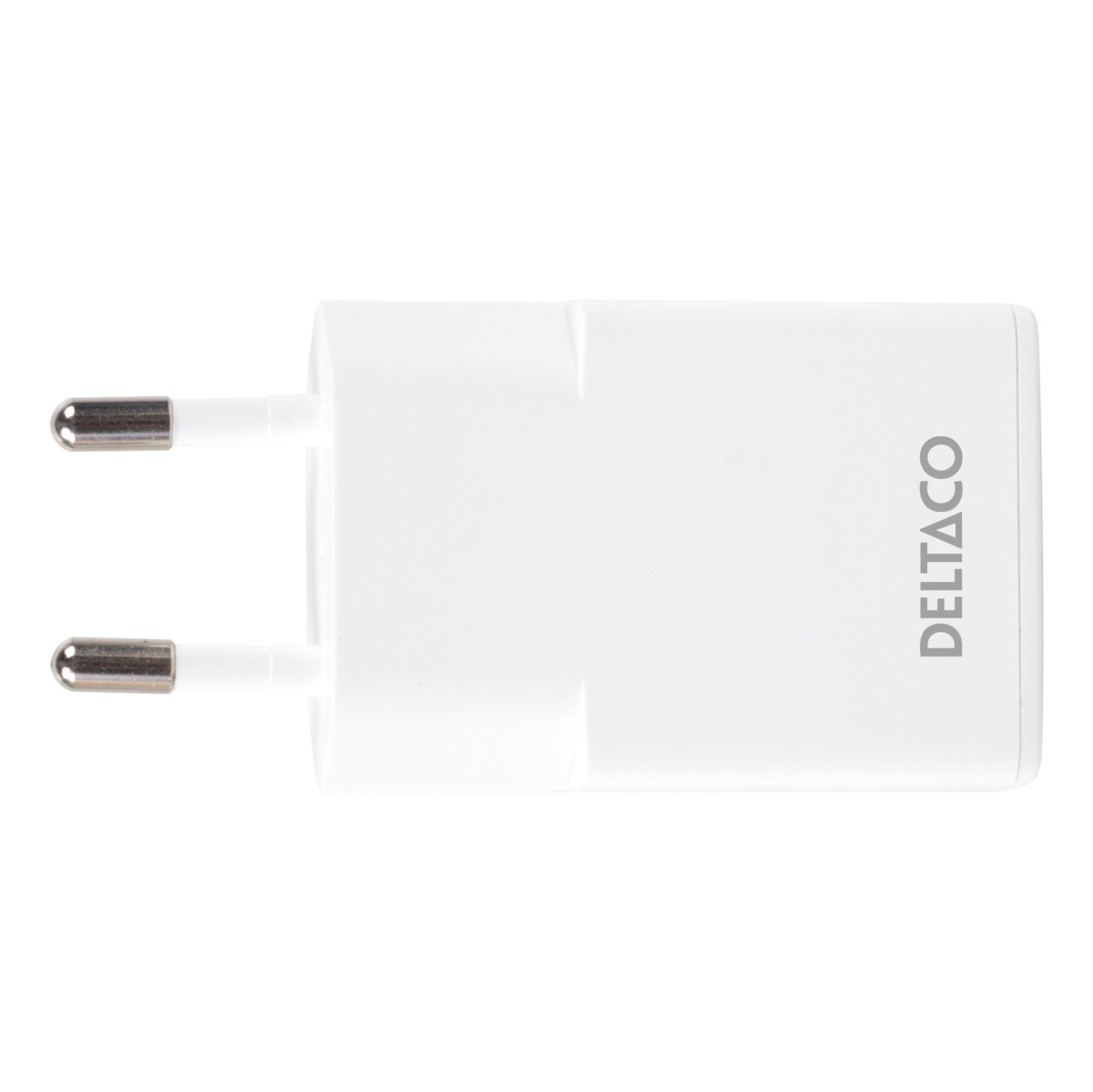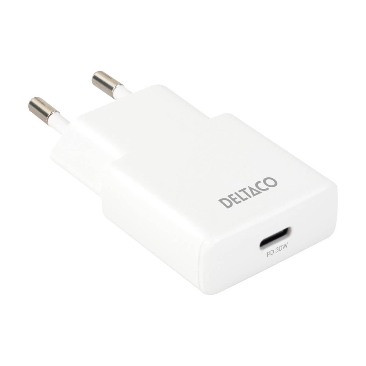 DELTACO USB-C väggladdare, 1x USB-C PD 30 W, slimmad storlek, stödjer PPS