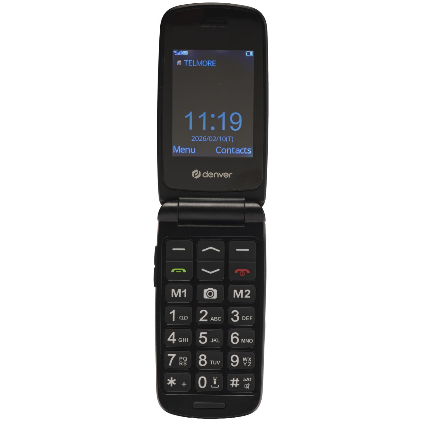 Denver Knapptelefon 4G SOS-knapp Radio Flip-design Svart