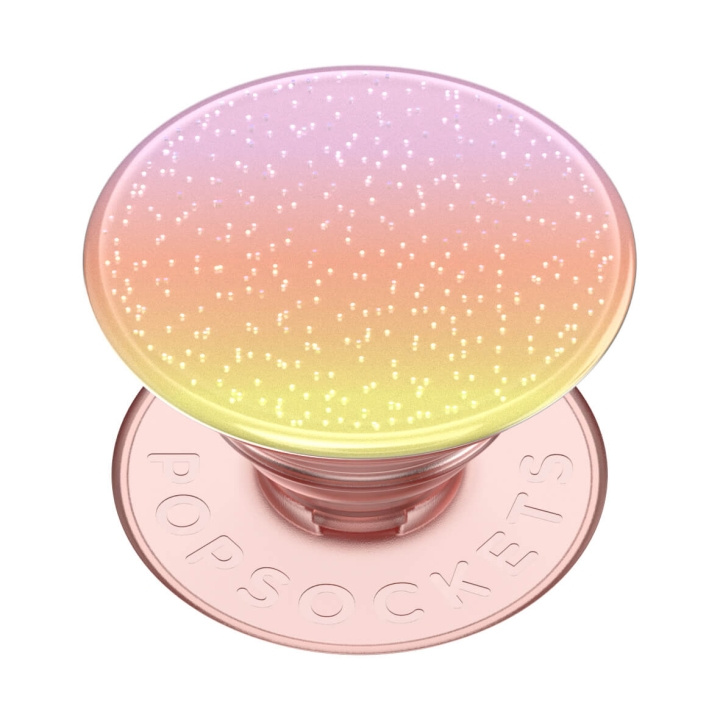 The PopGrip original Glitter Aura Sunrise from PopSockets is designed to provide a secure grip on your phone, making one-hand texting and taking selfies easier than ever. It also functions as a convenient stand, allowing you to watch videos on the go. The swappable top feature lets you change your style effortlessly by simply pressing down and twisting the top 90 degrees.