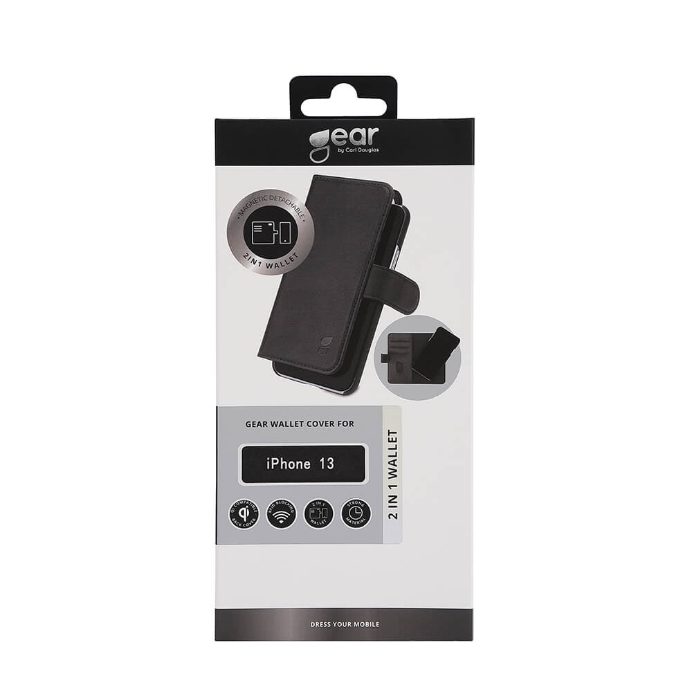 GEAR Black Mobile Case, with 3 Card Slots, in Imitation Leather for iPhone 13 - With Removable 2in1 Magnetic Cover