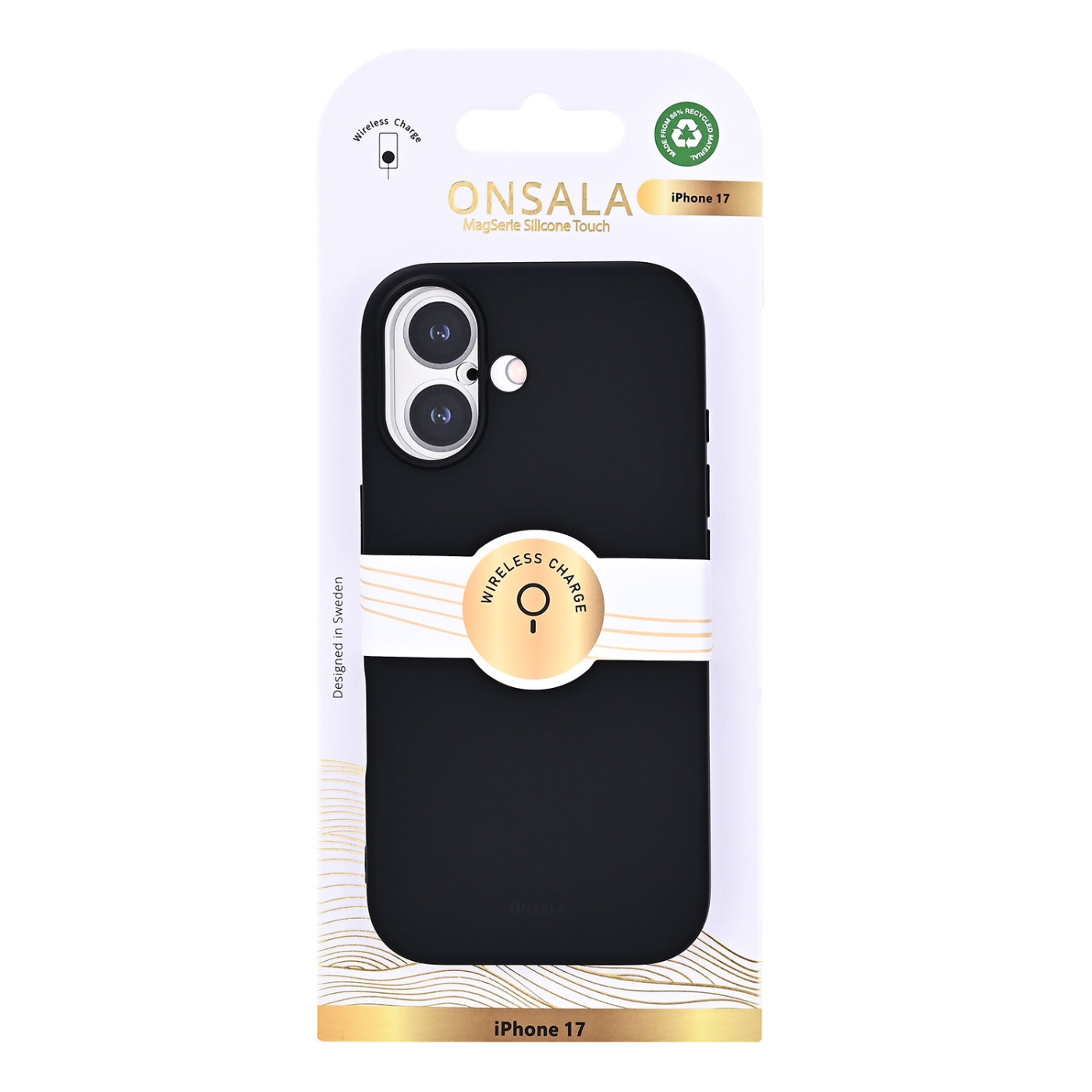 The phone case comes in a stylish Swedish design and is made of recycled material. The case has an everyday and stylish color that can easily be matched to every look and style. It has a matte, smooth and soft surface with Onsala's logo discreetly embossed.
