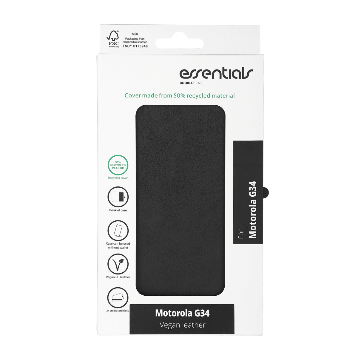 Essentials Motorola G34 PU plånboksfodral med 3-kortplatser, Svart