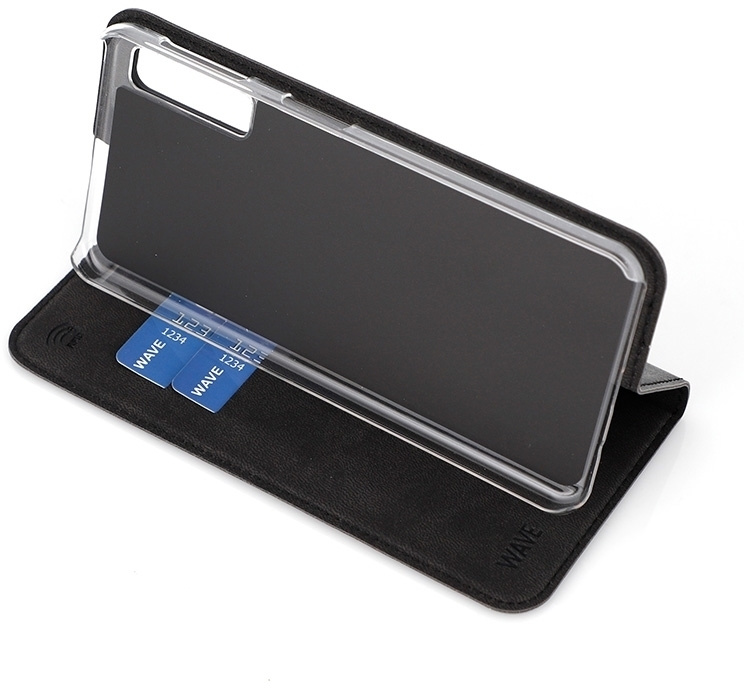 BookCase for your phone, made of high-quality PU leather. The case also has slots for a few credit cards. When closed, it effectively protects the phone screen. When opened, the case can also be folded into a table stand, making it easy to watch videos, for example, on the phone screen. Does not cover the phone's switches or ports.