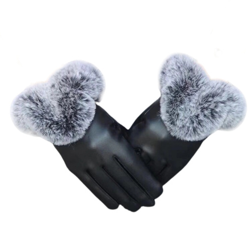 Stylish touchscreen gloves in faux leather and faux fur, M