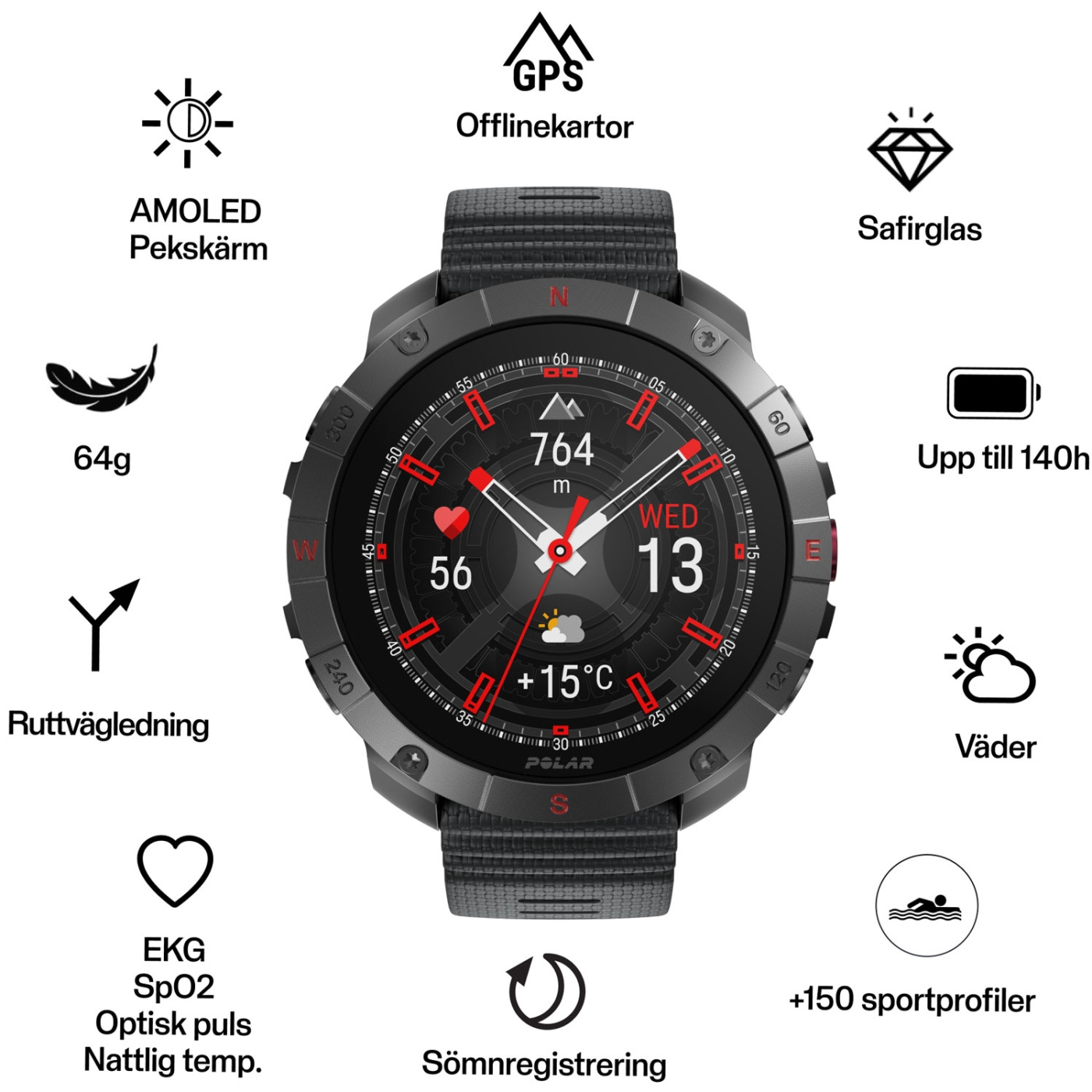 Polar Grit X2 Pro TITAN är en tuff och robust sportklocka för utomhussporter, gjord för äventyr med AMOLED-display med safirkristallglas
