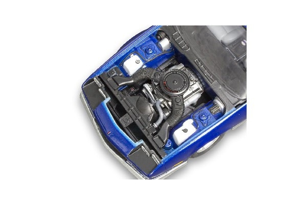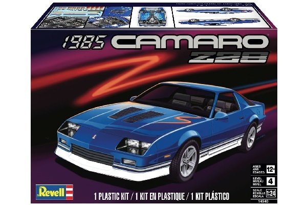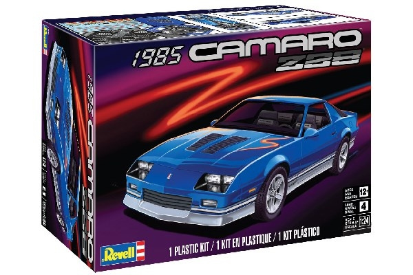 In 1985 the Camaro was at the mid-point of the third generation. For the Z28 version there was a ne spoiler in the front and simulated louvers on the hood. In the engine compartment was a 5.0 liter V-8 engine with 215 hp. - Multi piece V8 engine - Z28 body features including spoiler and hood detail - 5.0 liter V8 with cold air supply - Fully detailed interior - Detailed suspension
