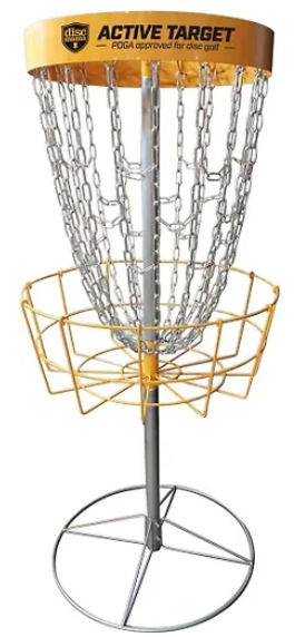 Discmania Active Target is a very sturdy PDGA-approved basket, yet it is easily movable weighing only 15.5 kg. The 18-chain basket catches discs very well and thus feels similar to course baskets.