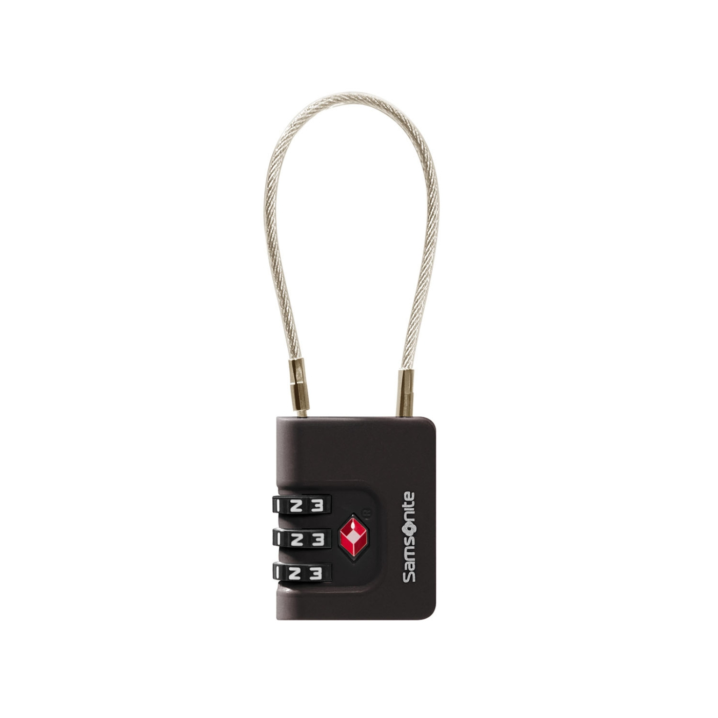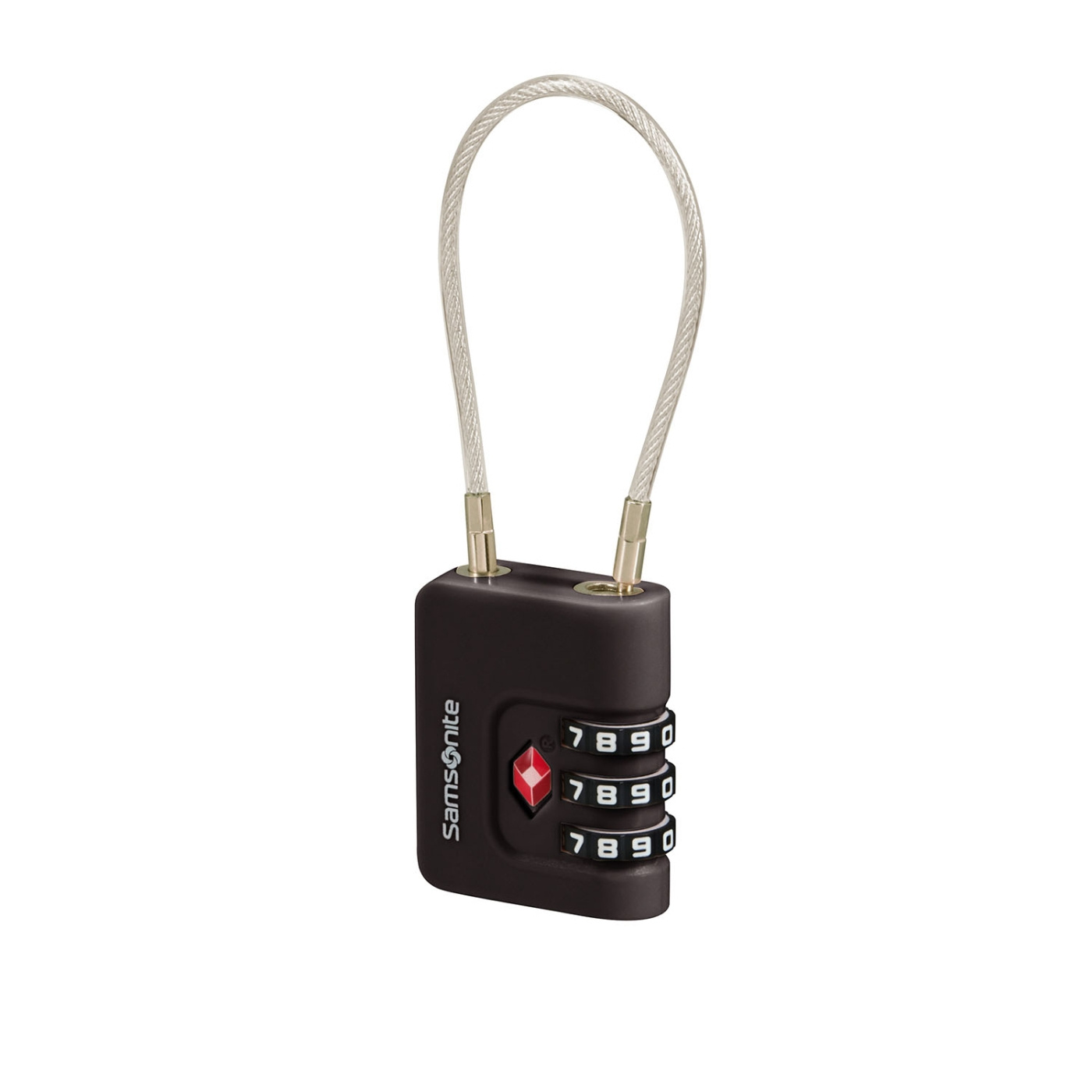 A secure cable lock from Samsonite with TSA approval for safe travel.