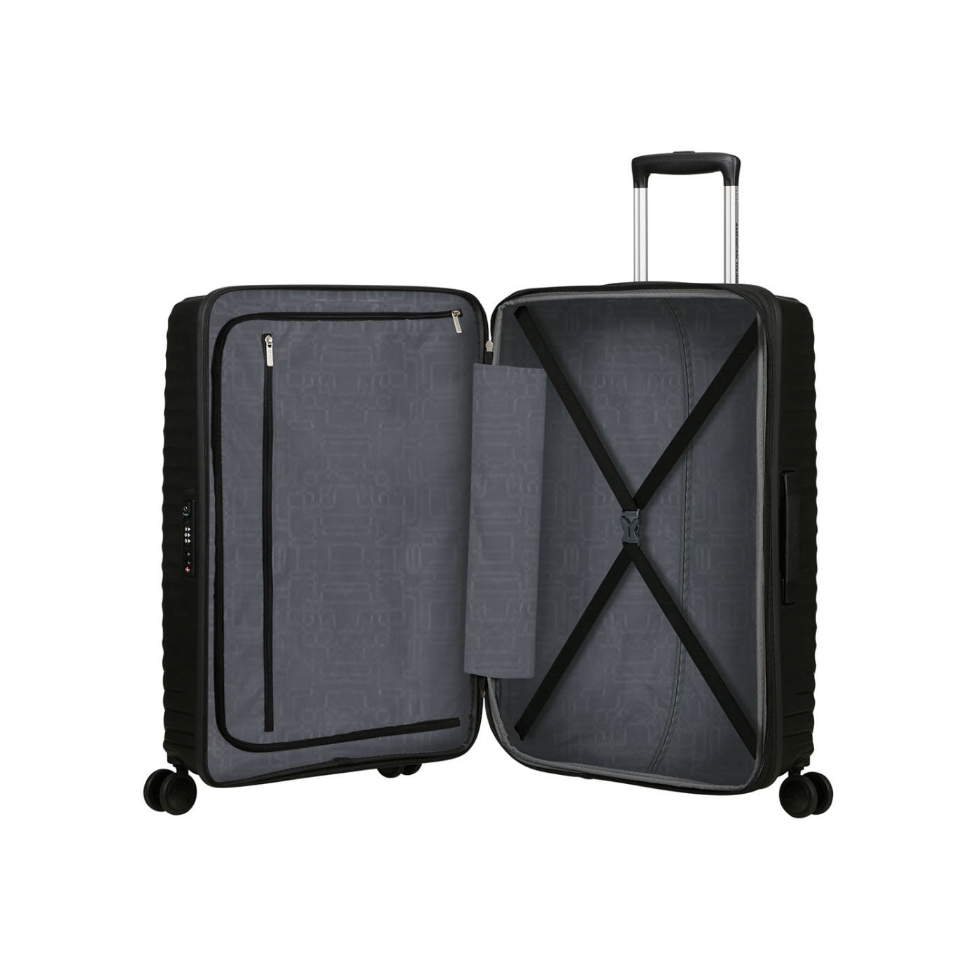 This suitcase from American Tourister offers expandable capacity and secure travel features.
