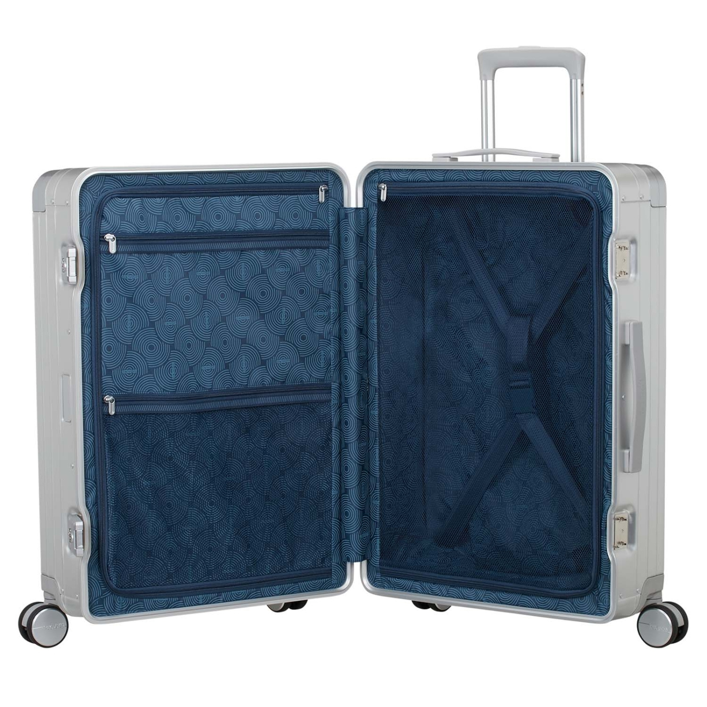 Tillverkad i anodiserad aluminium erbjuder den exceptionellt skydd för dina tillhörigheter samtidigt som den ger ett lyxigt intryck. Denna mellanviktsväska är perfekt för längre resor eller som extra bagage vid längre vistelser.