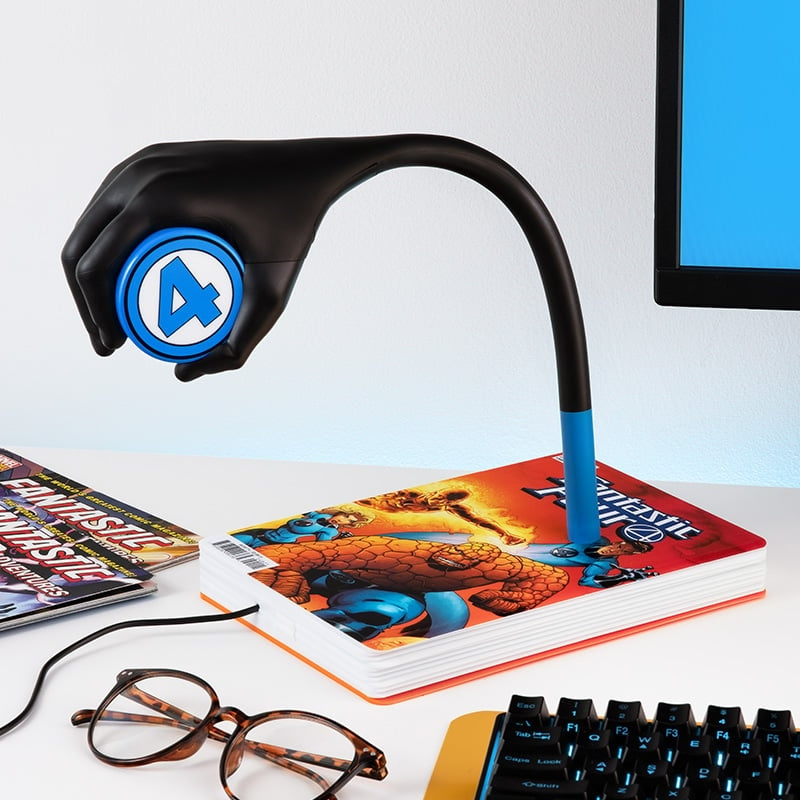 Introducing the Mr. Fantastic Posable Light, a must-have for Fantastic Four fans and comic lovers alike. Standing 30cm (11) tall, this fully posable lamp features Mr. Fantastic's iconic stretching arm reaching out of a comic book base, gripping the glowing Fantastic Four logo. Powered by USB cable (attached), this dynamic light is perfect for desks, bedside tables, or mounting to your wall. You can adjust and bend Reed Richards' arm into different positions to direct light exactly where you need it. The Mr. Fantastic Posable Light brings a heroic glow and a touch of comic book magic to any room.
