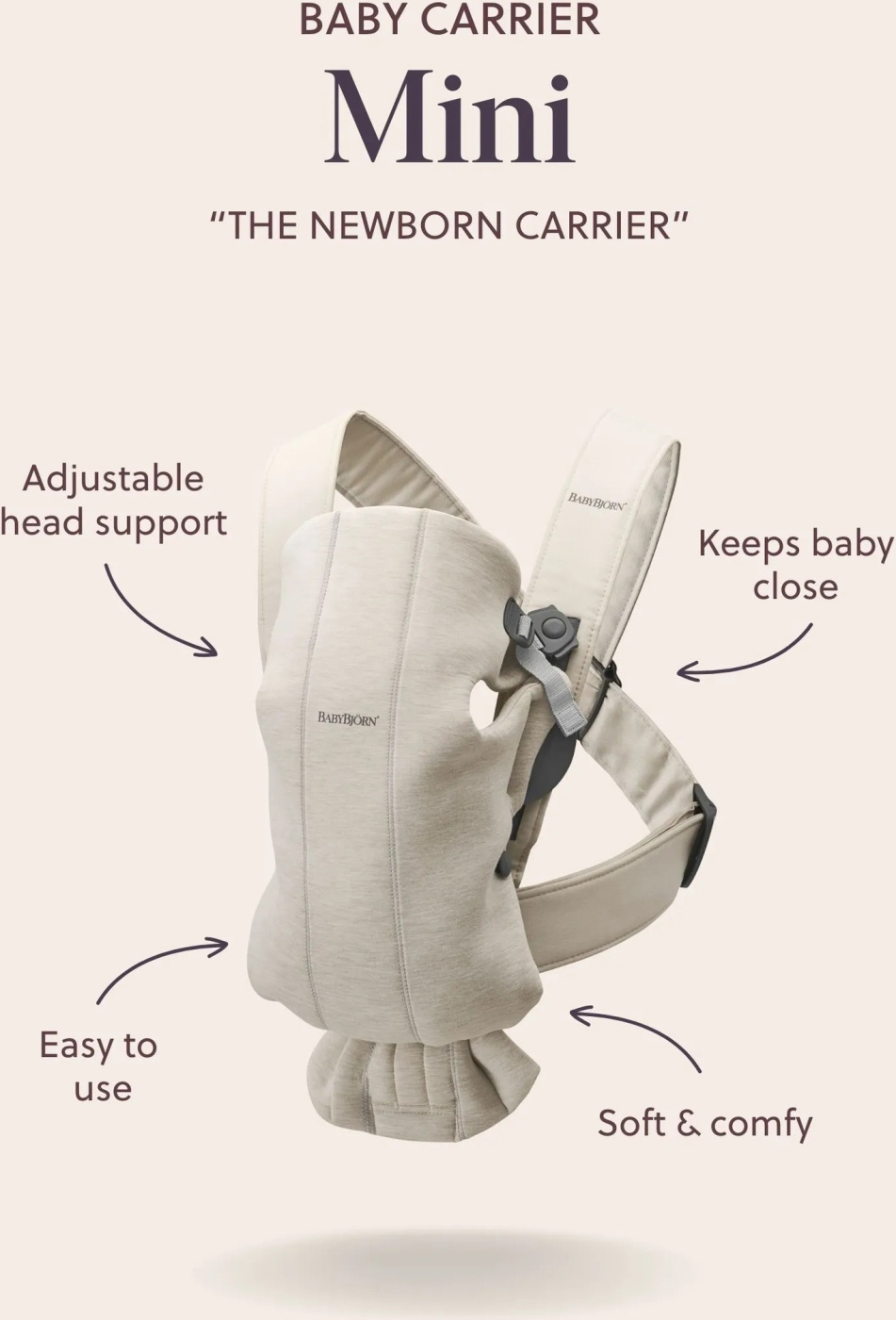 BabyBjörn Mini is a small, easy to use and very soft baby carrier for newborns. The carrier is easy to put on without assistance and the whole front panel is easy to open when lifting a sleeping baby. The soft, stretchy and carefully designed fabrics make the baby carrier a comfortable and cosy place for your newborn. Your baby travels in the sling in an ergonomically comfortable froggy position. The baby can be carried on the front of the carrier. The baby's face should always be towards the carrier until he or she has learned to carry his or her own head. Face forward can be used for infants over about 5 months of age.