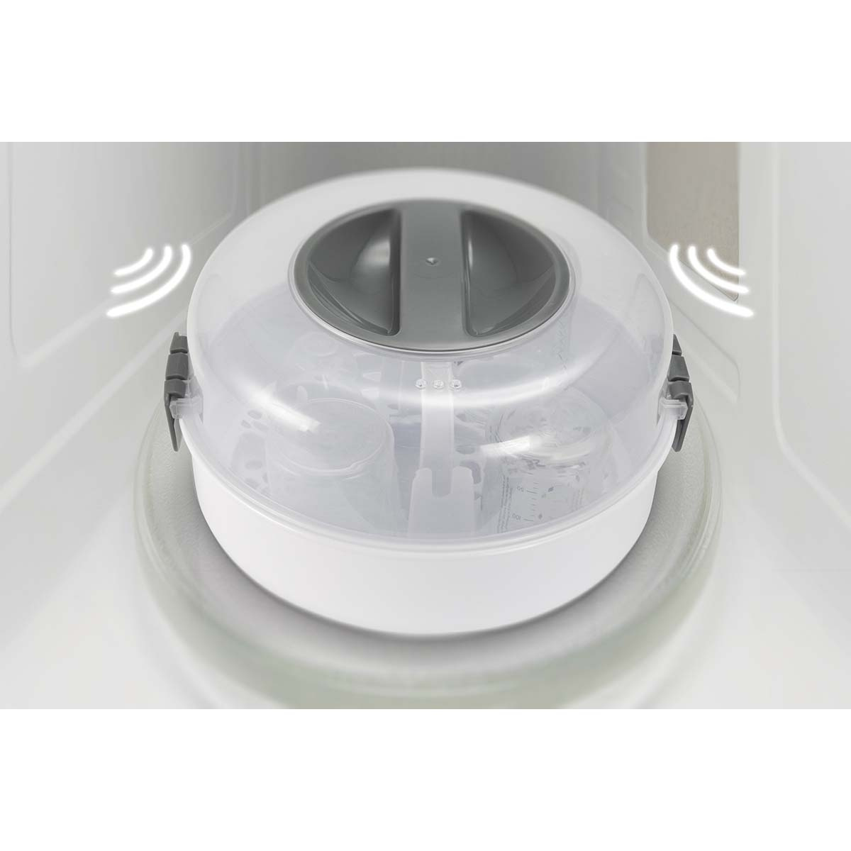 With this bottle sterilizer, you can clean bottles and teats in no time without the use of cleaning agents. The sterilizer bottle works with steam and kills 99.9% of all bacteria. If you are bottle feeding or breast-feeding milk, you will most likely to go through four to six bottles a day. That's a lot of cleaning work, which you can leave to the bottle sterilizer. Your bottles will be ready again for use within six minutes, and you won't have to worry about it. How relaxing!