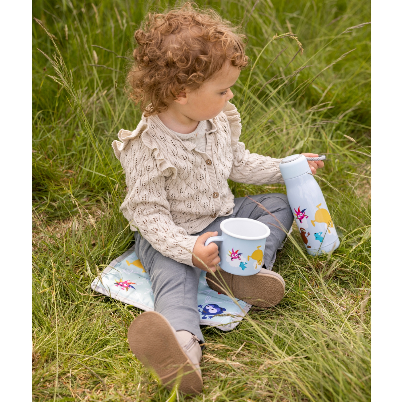 Här är en härlig emaljmugg med ett lekfullt motiv av Babblarna