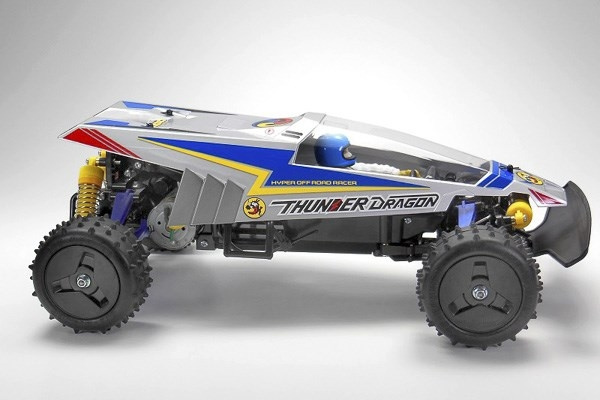 Tamiya is delighted to announce this re-issued and updated version of the 1988 hit buggy Thunder Dragon. With shaft-driven 4WD and smooth, ground hugging suspension providing a super drive, plus the stylish Thunder Dragon body which appeared in a classic R/C comic in Japan, this will be an exciting release for R/C fans of all ages and abilities.