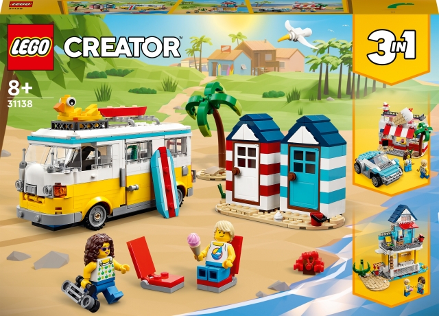 - 3 builds in 1 box – Kids can create fun-filled stories at the beach with this LEGO® Creator 3in1 Beach Camper Van (31138), featuring a camper van, summerhouse and an ice-cream shop