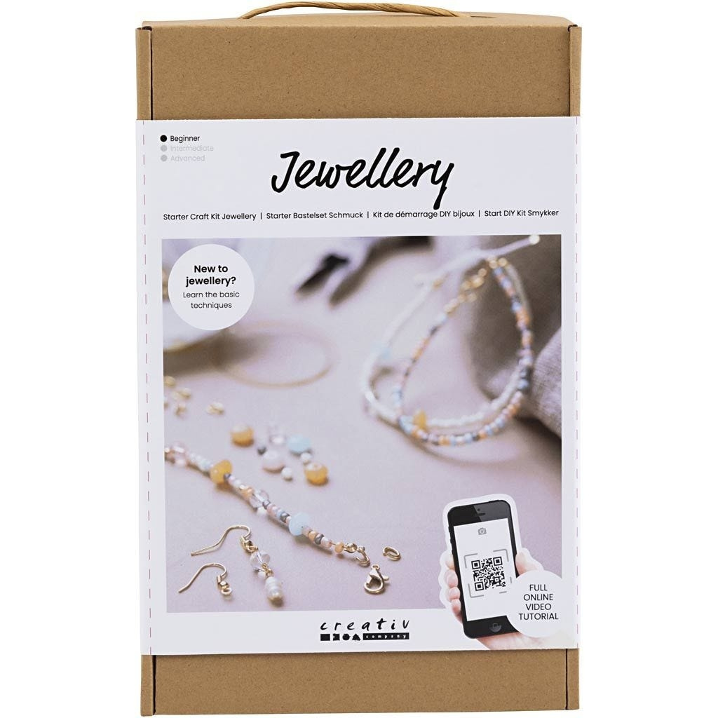 Through our videos you will learn four different techniques and the result will be beautiful earrings, necklaces and bracelets in delicate colours. The set gives you a basic knowledge of jewellery making, allowing you to take on other creative jewellery projects on your own. Our sets are therefore perfect for those of you who want to learn the popular craftsmanship, but who have not yet started