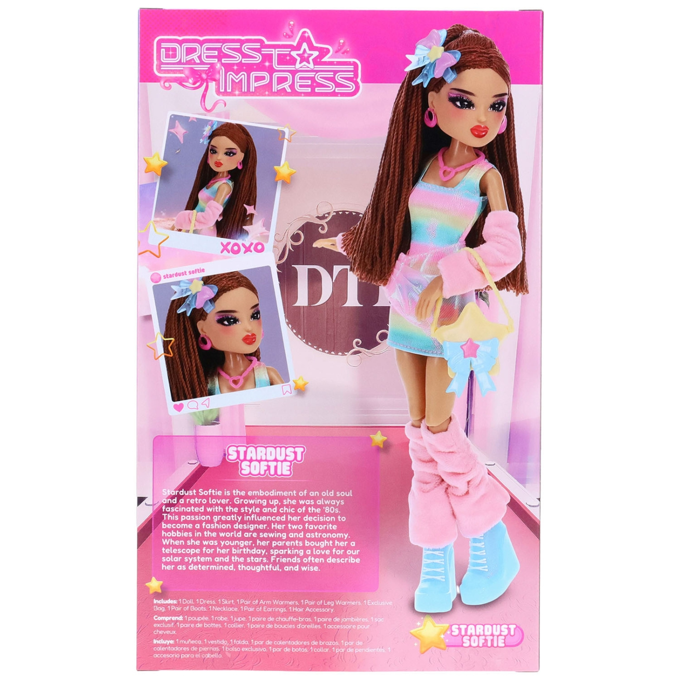 Stardust Softie is a dreamy fashion icon from the Dress to Impress series, known for her pastel vibes and celestial charm. She dazzles in a flowy outfit adorned with shimmering accents and starry details, making her perfect for striking stellar poses and inspiring magical fashion moments. Each doll comes with a collector's card featuring exclusive artwork and a DLC code for unlocking in-game styles. Whether displayed or part of your squad, Stardust Softie is ready to light up every runway with her out-of-this-world glow.